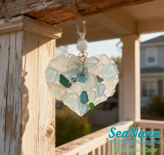 💗Handcrafted Sea Glass Heart Wall Ornament: Keep Your Loved Ones Close